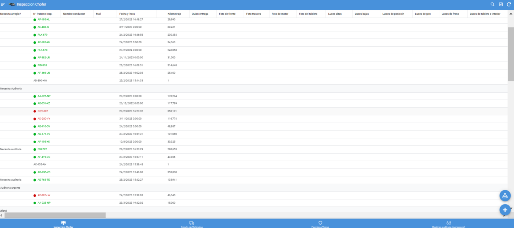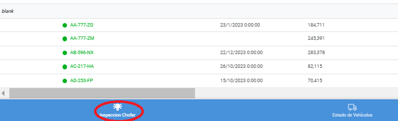 La inspeccion de chofer es la forma en la que vamos a cargar el kilometraje del vehiculo, esto determinara si el vehiculo llego a los kilometros para cambiar un repuesto o si ya es momento de hacer un service.